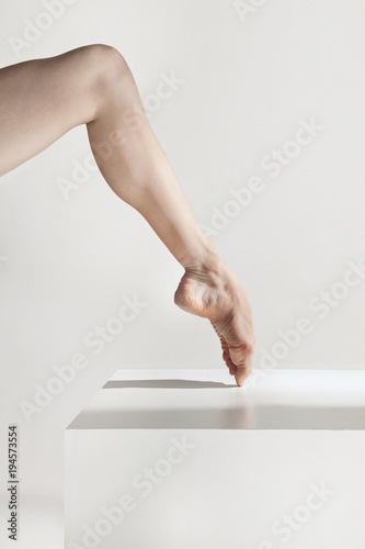 © master1305, Obraz premium Close-up ballerina's legs on the white floor