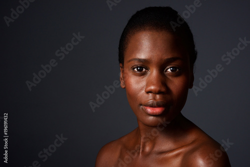 Fototapeta premium Close up beautiful african woman looking at camera with naked shoulders