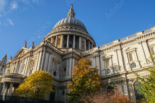 Obraz premium close up beautiful architecture of St. Paul Cathedral in London with bright clear blue sky in autumn
