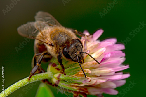 Fototapeta premium Close Up beautiful Bee macro in green nature