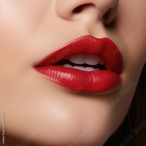 Obraz premium Close-up Beautiful lips. Close-up of part of a young woman's face. AI generated.