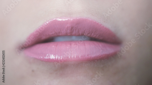 Obraz premium Close up beautiful sensual pink lips of young girl
