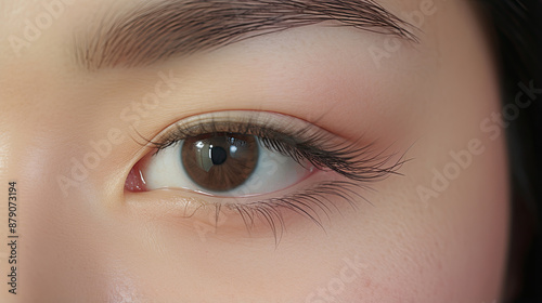 Obraz premium close-up Beautiful woman's eyes eyebrows eyelashes cosmetic with Microblading