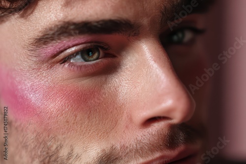 Fototapeta premium Close-up Beauty Portrait of Man with Soft Pastel Makeup