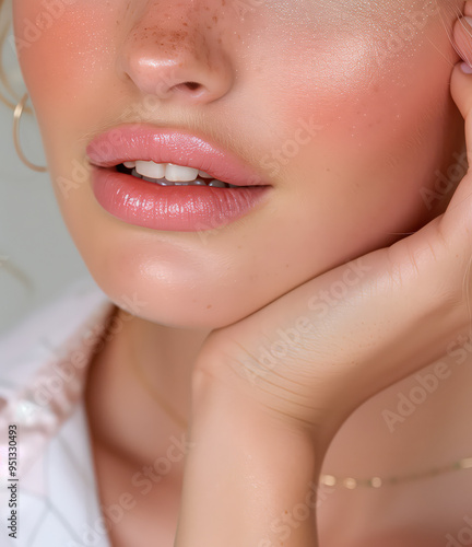 © Nathasa, Obraz premium Close up beauty woman face with empty background.