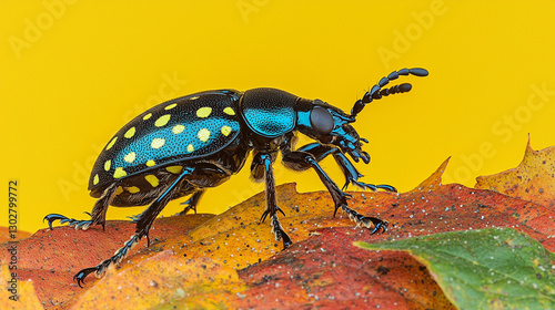 © bonjer, Fototapeta premium Close-up Beetle on Autumn Leaves