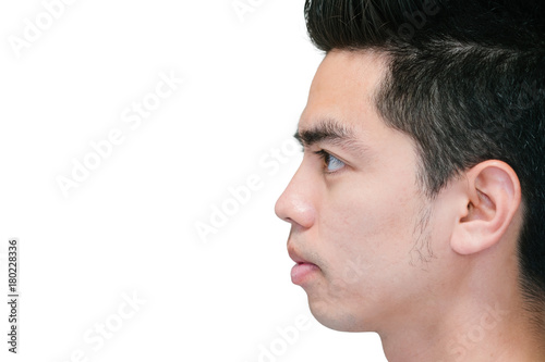 Obraz premium Close-up beside face handsome smiling young isolated on white background. Human Face. Asia man people.