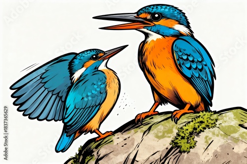 © Manan, Fototapeta premium Close Up Bird Perching Rock Illustration