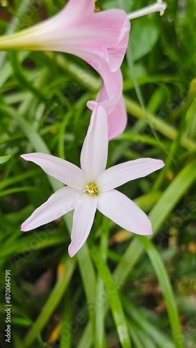 Obraz premium close up blooming pink rain lily, zephyr lily, flower