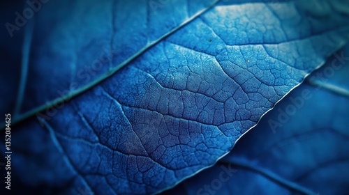 Fototapeta premium Close-up blue leaf texture, veins detailed, dark background, nature backdrop