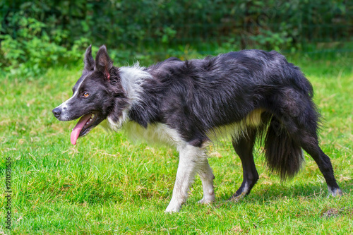 © benschonewille, Fototapeta premium Close up border collie dog walks in grass