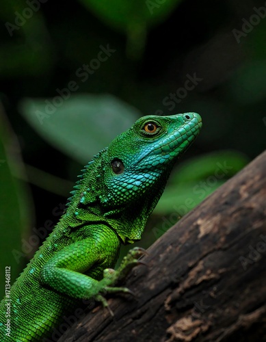© Tini, Obraz premium Close-up bright green lizard