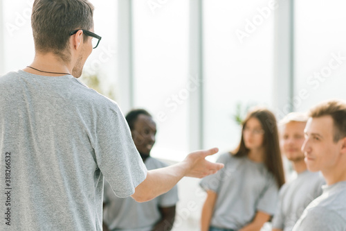 Fototapeta premium close up. business coach holds a debate with a group of young people