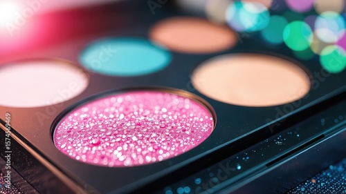Naklejka premium Close-up captures the vibrant hues of an eye shadow palette, showcasing an...