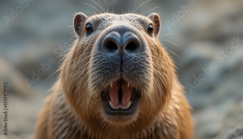 Fototapeta premium Close-up Capybara Showing Teeth with Open Mouth, Cute Animal