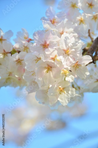 © DAISUKE, Fototapeta premium Close-up cherry blossoms in full bloom and blue sky