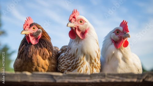 © M.Gierczyk, Fototapeta premium Close-Up Chickens on Barn Rafters