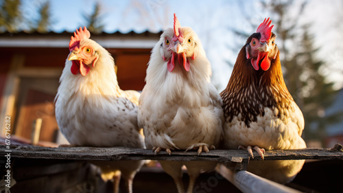 © M.Gierczyk, Fototapeta premium Close-Up Chickens on Barn Rafters