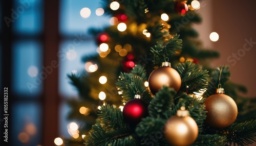 Fototapeta premium Close up christmas tree decorated with christmas balls