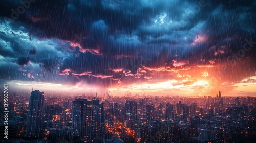 © Bold24, Fototapeta premium Close-up cinematic shot of a dark stormy sky, heavy rain clouds city landscape
