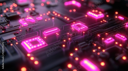 Obraz premium Close-up Circuit Board, Glow, Technology, Abstract