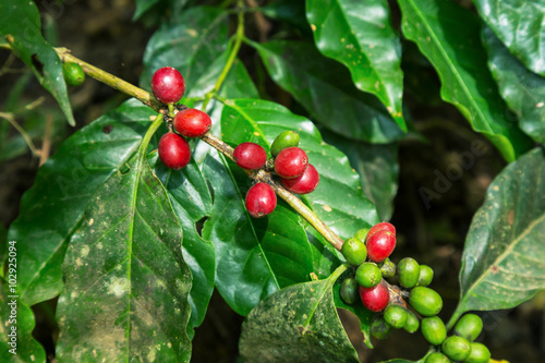 © tortoon, Obraz premium close up coffee bean on tree