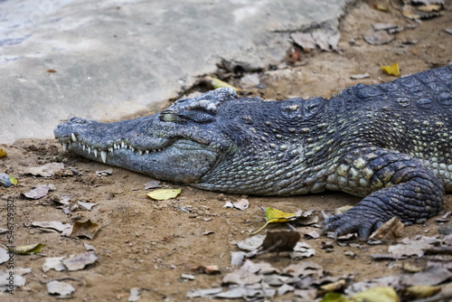 © pumppump, Naklejka premium Close up crocodile head in garden