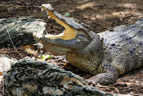 © pumppump, Obraz premium Close up crocodile is rest and show head in garden