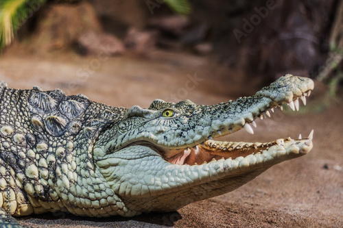 Obraz premium Close-up crocodile opens his mouth. Dangerous amphibian.