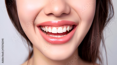 Obraz premium Close - up cropped of a beautiful smiling woman with white perfect teeth...