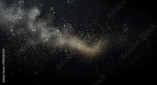 © Seyyar, Fototapeta premium Close up depiction of airborne debris and dust particles on a dark studio background