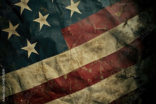 Fototapeta premium Close-up detail of a heavily worn and stained American flag.