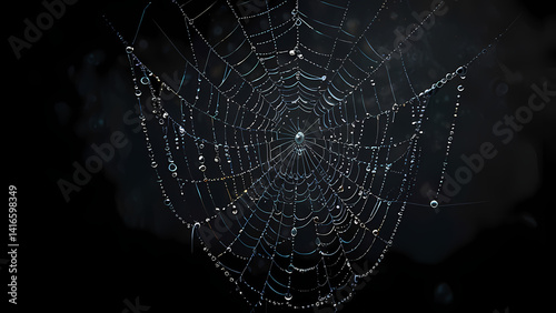 Naklejka premium Close-Up Dew Spider Web – Moody Nature Print