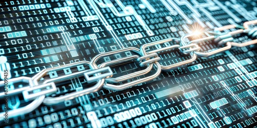 Obraz premium Close-up digital code abstract data glitch blockchain futuristic background...