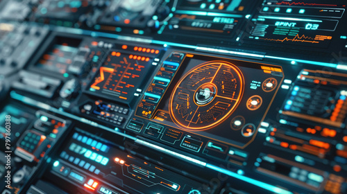 © Camalia MN, Obraz premium Close up digital futuristic interface background