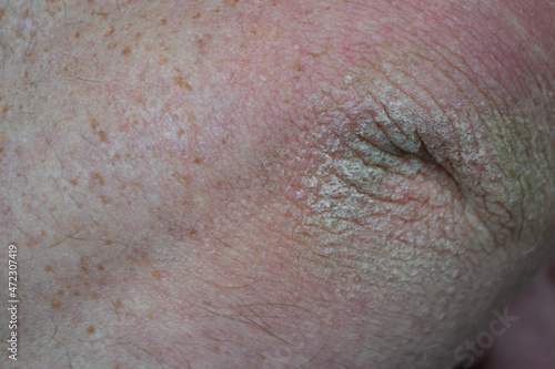 © Luci, Fototapeta premium Close up dry flaky skin on elbow, caused by psoriasis. High quality photo
