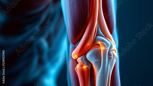 Naklejka premium Close-up examination of muscular and tendon structures around the elbow joint...