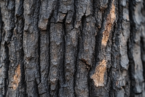 Obraz premium Close-up examination of textured tree bark showcasing intricate patterns and...