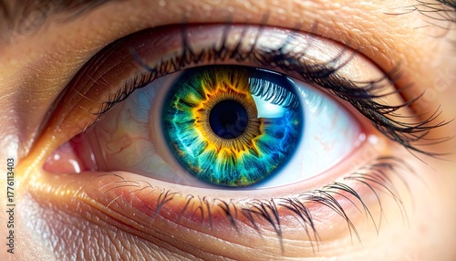 © Jaejems, Fototapeta premium Close-Up Eye with Mesmerizing Colorful Iris