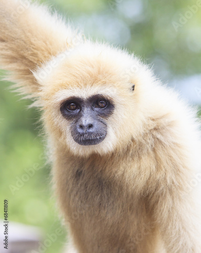 Fototapeta premium close up face of White Cheeked ,white hand Gibbon or Lar Gibbon