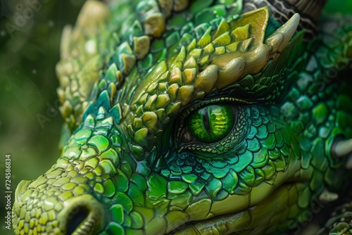 Fototapeta premium Close up fantastic creation green good dragon, chinese new year celebration and fantasy world concept