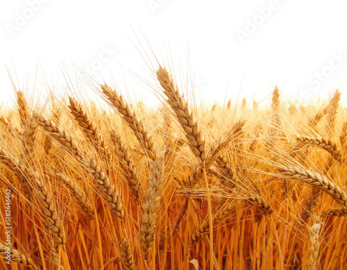 © Adrian, Fototapeta premium Close-up field of ripe wheat swaying in sunlight against a dark background