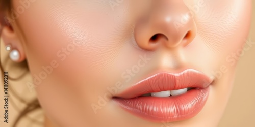 Obraz premium Close-up, flawless complexion, moisturizing cream application, beige background, cream texture, studio shot