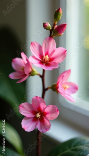 © jarin, Fototapeta premium Close-up floral branch detail, minimalist living room , subtle, still life