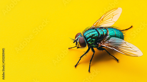 © bonjer, Fototapeta premium Close-up Fly on Yellow Background