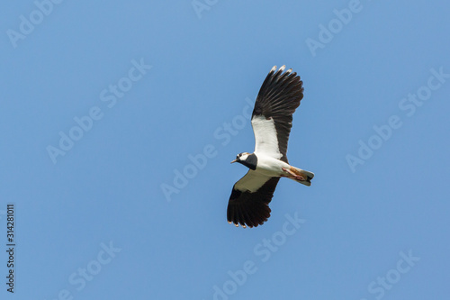Fototapeta premium close-up flying lapwing bird (vanellus vanellus) with spread wings