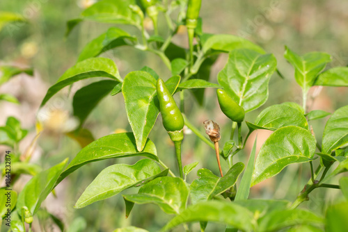 Obraz premium Close up fresh green chili on chili plant