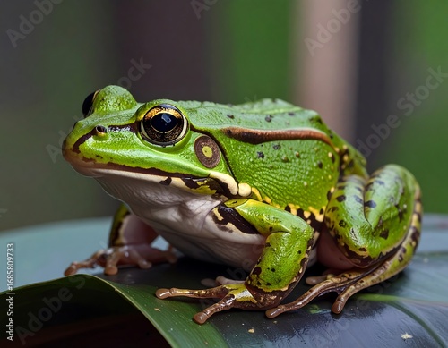 © Ellfirdaus, Fototapeta premium Close-up frog on leaf