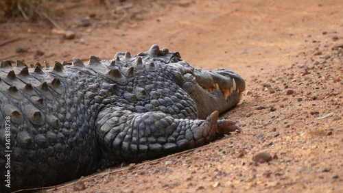 Obraz premium Close up from a Nile crocodile laying on a dirt road