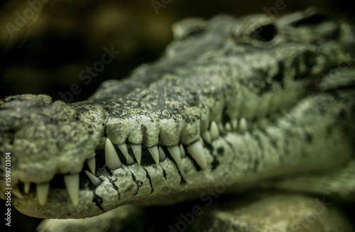 Fototapeta premium Close-up from crocodile mouth, with depth of field in the background